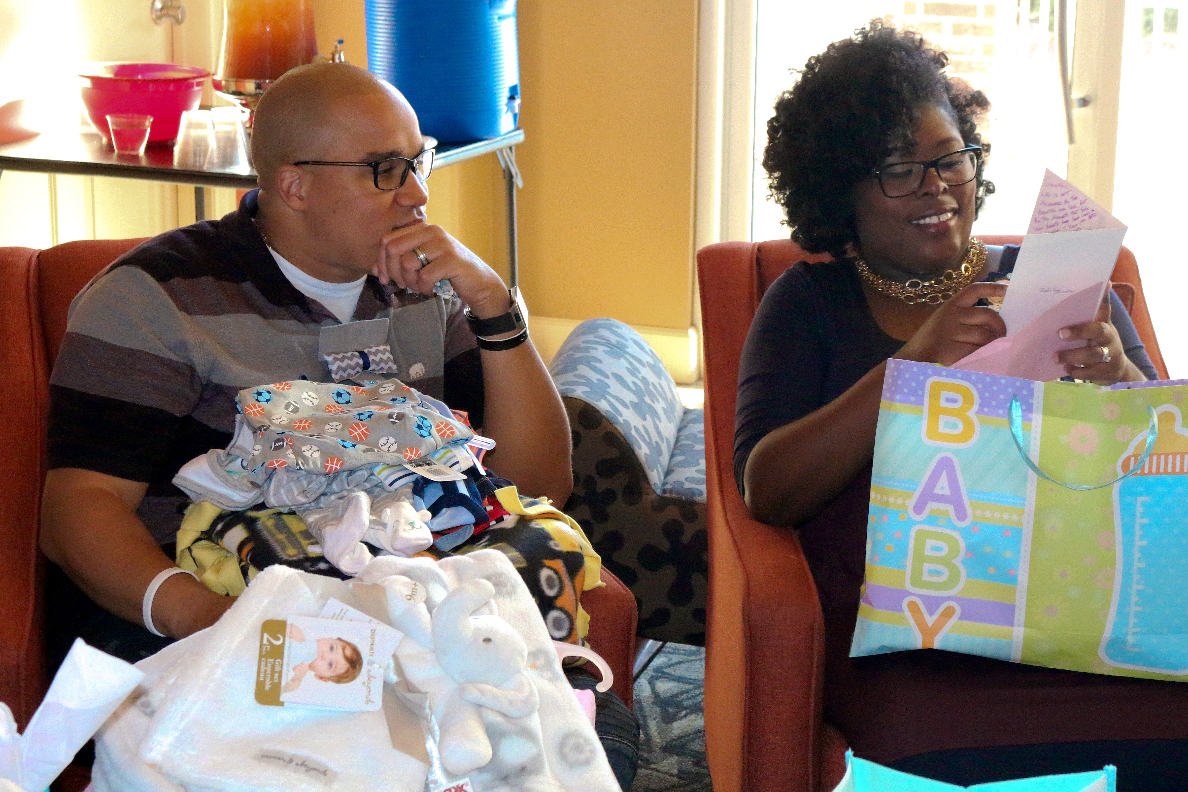 Which means you need to purchase thank yous/envelopes early! Co-ed baby showers are great because the husbands can be the clean-up crew! Lol But Seriously! Always have a TV and beer or other drinks for the fellas. They won’t care about the games and fellowship that the ladies do at baby showers. Unless they are super competitive for the prizes (husband’s friend) or want to be a part of EVERYTHING concerning their little one! My husband was the silly daddy that played all the games and provided the side humor for his responses and involvement. I loved it!
