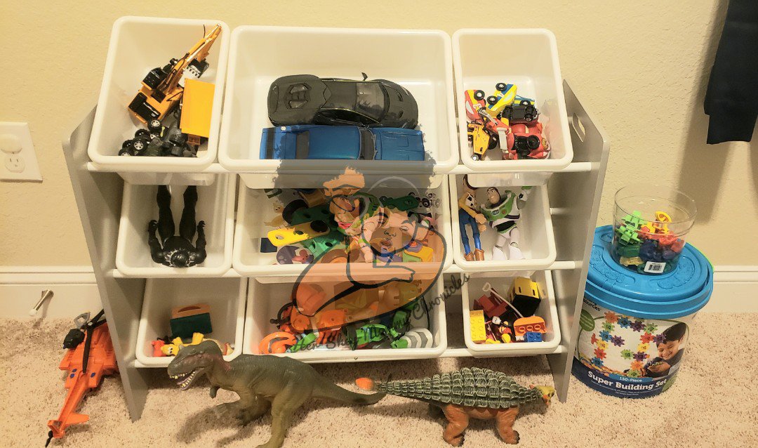 We are definitely apart of the crowd that buys our kids lots of toys! Our almost 4 year old has toys in practically EVERY part of the house! 😂🤦🏾♀️ To the point it has driven me so crazy that we have come up with a system of how many toys he can have outside of his playroom. It’s more of a trading system actually, where he can have 5 toys in the living room. If he wants a different toy, then he has to trade another toy for it. That way our living room doesn’t look crazy every day, and we aren’t wounding our feet, stepping on toys he leaves behind that ONLY he and our almost 1 year old can see! There is a toy chest in the office, a cubby system in his bedroom and a whole playroom upstairs that hosts the majority of toys.